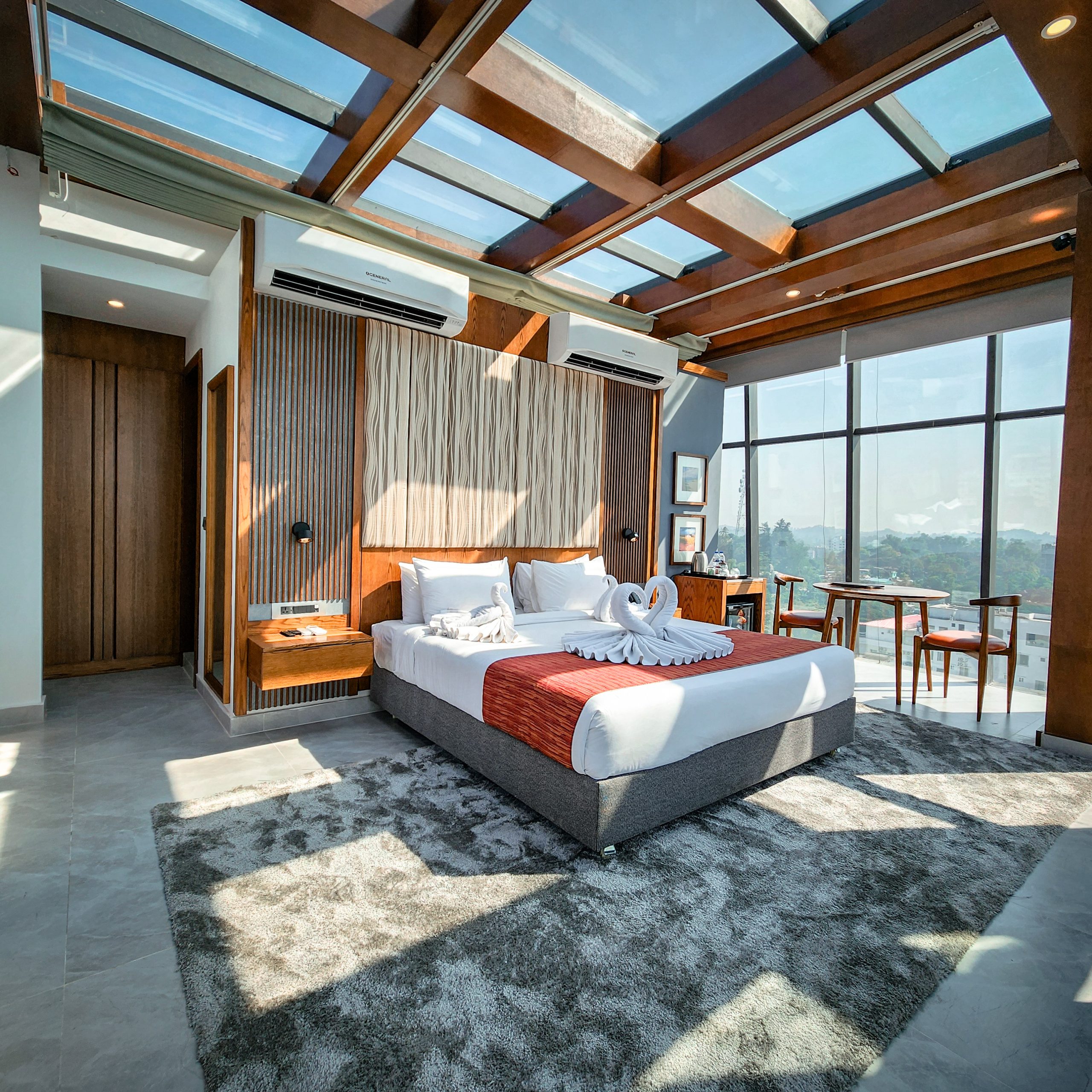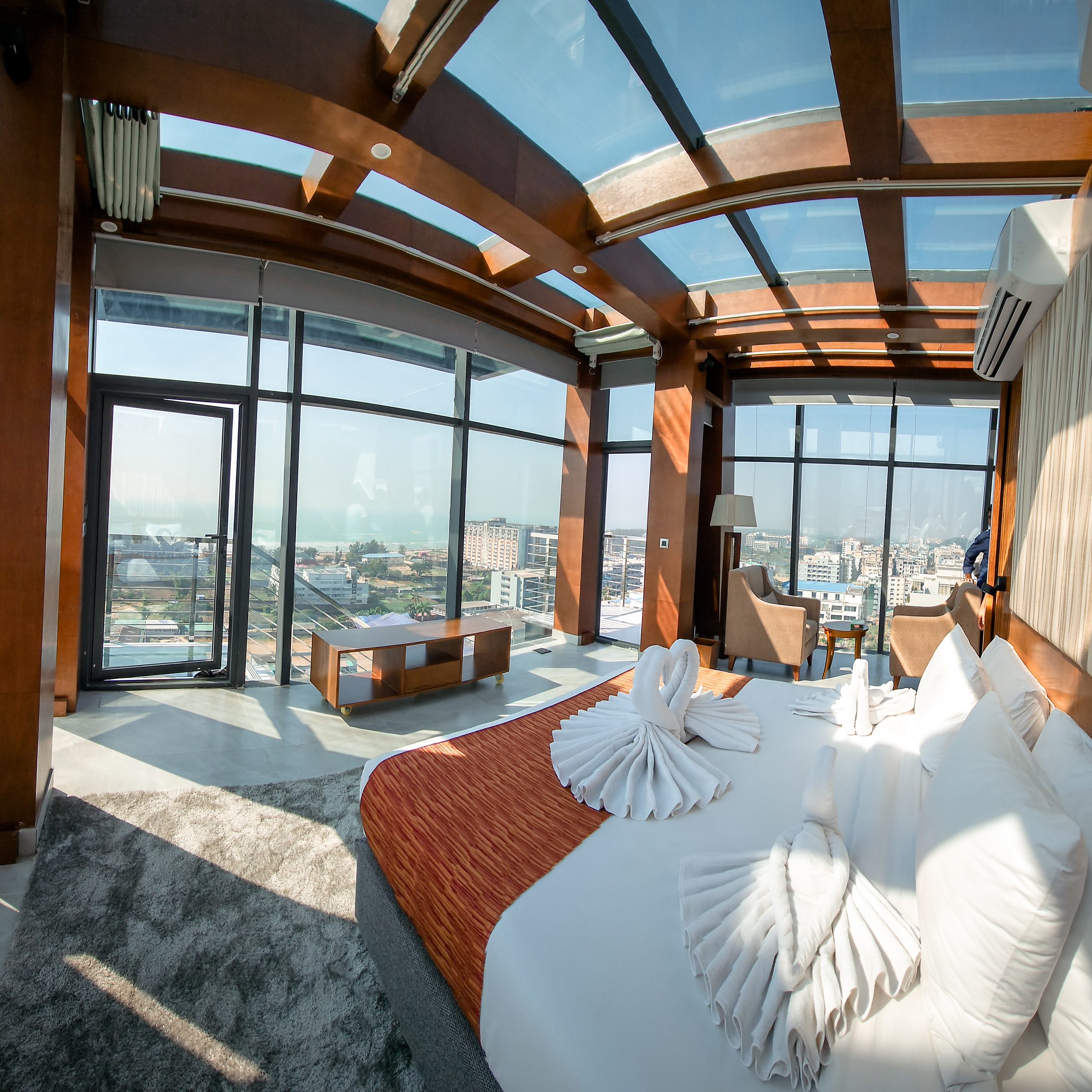 Spanning 1000 square feet, this luxurious suite blends modern elegance with a warm, inviting ambiance. Featuring a plush king-sized bed and breathtaking city or sea views, it offers the perfect escape for couples seeking comfort and sophistication. Every corner is thoughtfully designed to ensure a relaxing, memorable stay — where tranquility meets refined living.